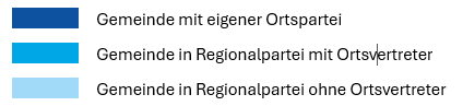 | Gemeinde | Adresse | Kontakt | Parteityp/Web |